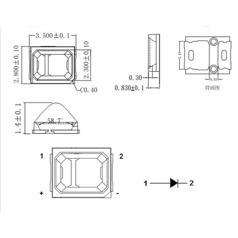 • 高亮 2835球頭藍光 1w2835帶透鏡藍色 聚光 2835凸頭藍燈...