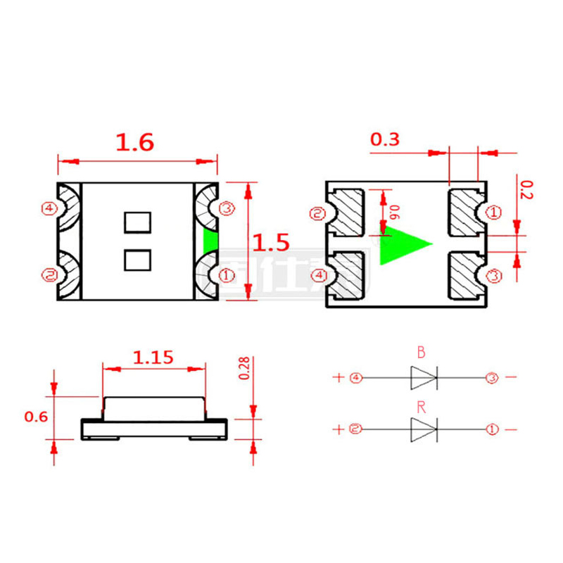 • 貼片LED 0603紅翠綠雙色發(fā)光二極管體積1.6*1.5*0.6 可來樣定制...