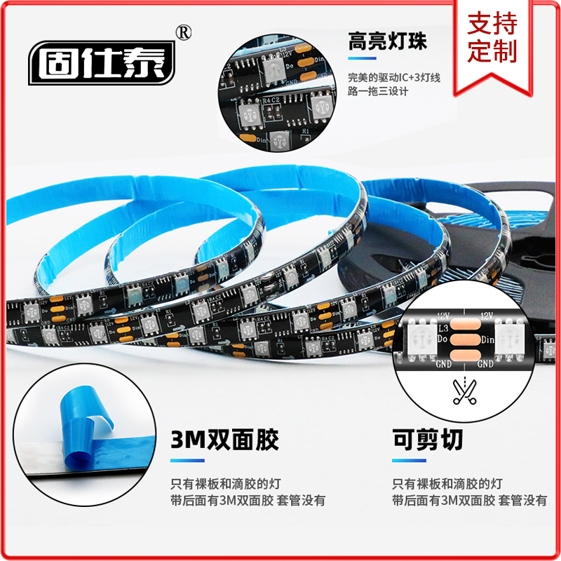• WS2811幻彩燈帶可編程跑馬流水RGB燈條三燈一控LED燈帶一卷5米...
